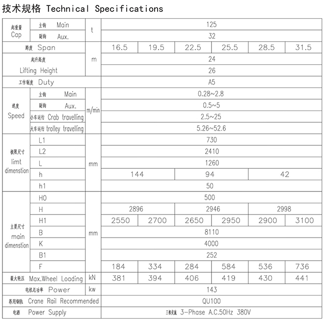 125t欧式吊钩桥式起重机